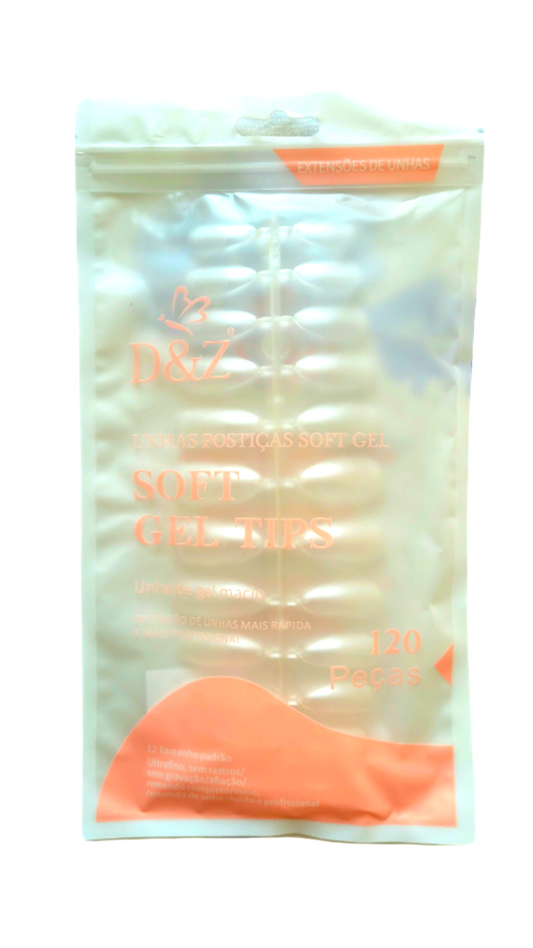 Pacote com 120 Unidades de Tips ou postiça de Gel com 12 modelos diferentes para melhor se ajustar em cada unha.